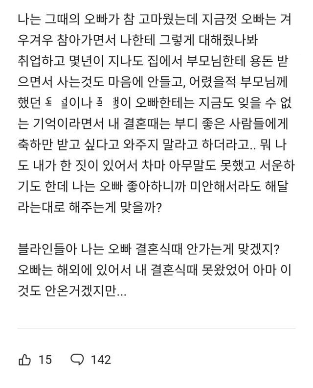 본인 결혼식 안 오면 안 되냐는 친오빠